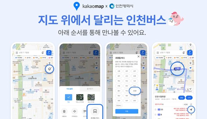 한방통신사 신유철기자 기자 | 인천광역시는 오는 9월 30일부터 카카오맵을 통해 실시간(초정밀) 버스 위치 서비스를 제공한다고 밝혔다.