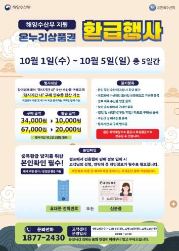 환급 기준은 구매금액 3만4000원 이상 구매하면 1만원, 6만7000원 이상 구매하면 2만원이다.