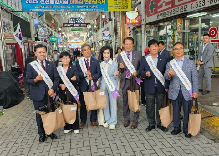 진천군의회 의원과 직원 등 30여 명이 참석한 이날 행사는 시장 상인들을 격려하고, 지역경제에 활력을 불어넣고자 마련됐다.