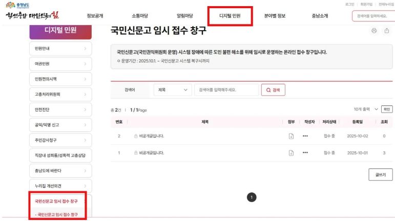 한방통신사 신유철기자 기자 | 충남도는 2일부터 도 누리집에 ‘국민신문고 온라인 임시 접수 창구’를 개설·운영하고 있다고 밝혔다.