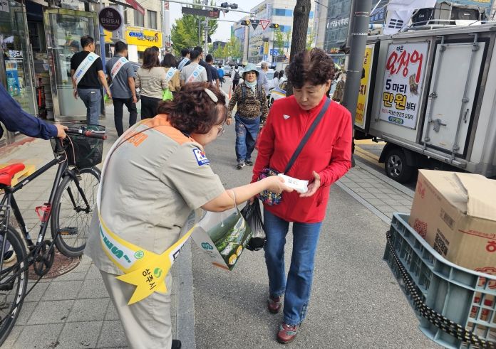 이번 캠페인은 민·관 합동으로 진행하여 추석 명절을 맞아 안전한 명절 분위기 조성을 위해 다중이용시설과 시장에서의 화재예방 수칙 및 소화기 사용 수칙 등을 홍보했다.