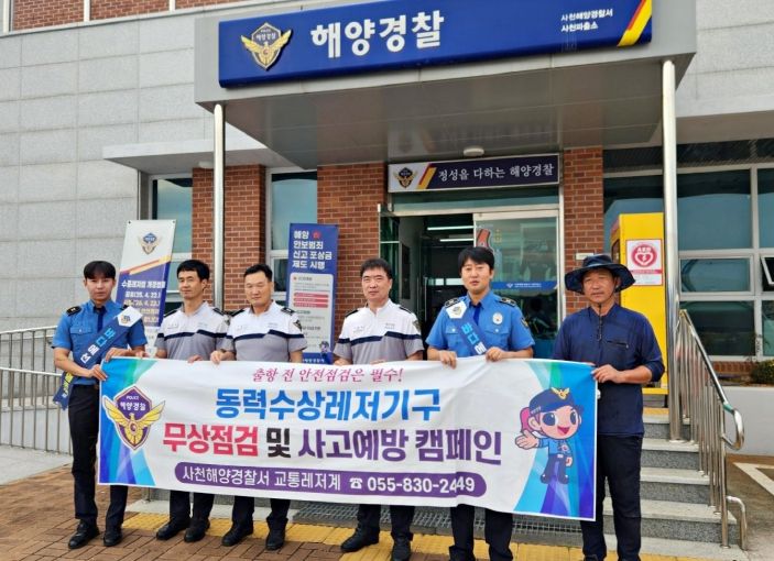 사천해양경찰서 관계자는 “이번 무상점검을 통해 표류사고를 사전에 예방하고, 수상레저 활동자의 안전의식 제고에도 도움이 됐기를 바란다”며, “앞으로도 해양레저 활동을 보다 안전하게 즐길 수 있도록 지속적으로 노력하겠다.”고 말했다.