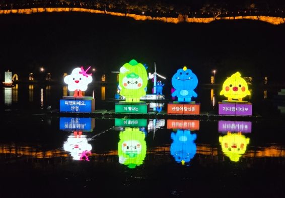산청군, 진주유등축제서 관광캐릭터 선봬 ‘산 너머 친구들’ 유등 수상 전시