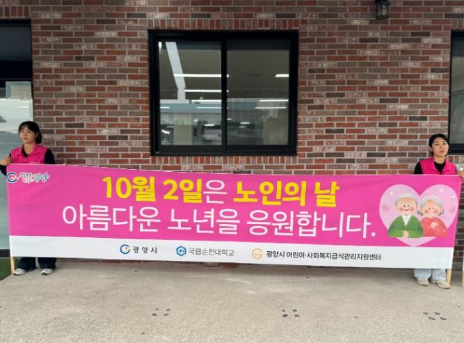 한방통신사 신다은기자 기자 | 광양시 어린이·사회복지급식관리지원센터는 지난 10월 2일 노인의 날을 맞아 광양시 가가호호주야간보호센터 앞에서 시민과 어르신을 대상으로 캠페인을 전개했다.