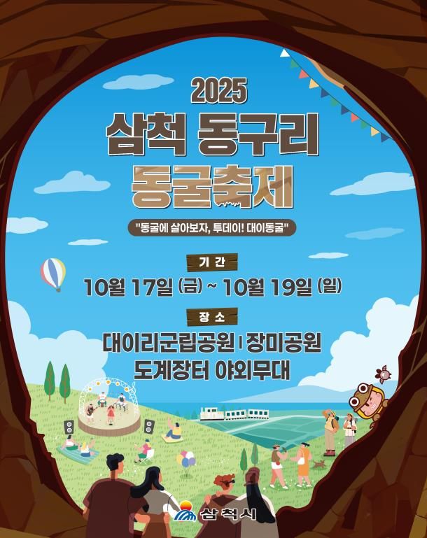 한방통신사 양호선기자 기자 | 삼척 동구리 동굴축제가 10월 17~19일 대이리군립공원(대이동굴)·삼척장미공원·도계장터 야외무대에서 동시에 열린다. ‘동굴에 살아보자, 투데이! 대이동굴’을 슬로건으로 한 올해 축제는 가족 공연과 실감형 동굴체험, 도심·생활권 무대를 셔틀망으로 연결하는 분산형 운영으로 하루 동선을 완성했다.