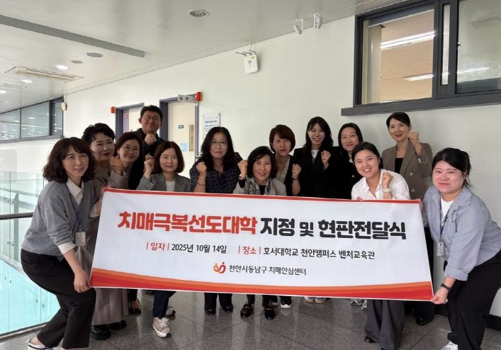 한방통신사 신태공 기자 | 천안시는 14일 치매극복선도대학으로 신규 지정된 호서대학교 글로벌융합대학에 현판을 전달했다고 밝혔다.