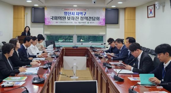 이번 간담회는 시정 주요 현안 공유 및 국회와의 협력 체계를 강화하기 위한 자리로, 양산시 2개 지역구 국회의원실 보좌진 12명, 양산시 행정국장 등 관계 공무원 8명이 참석했다.