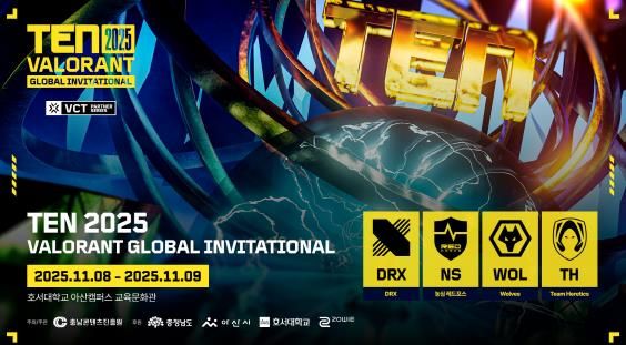 한방통신사 신유철기자 기자 | (재)충남콘텐츠진흥원은 글로벌 인기 FPS 게임 발로란트(VALORANT)의 프로 초청 대회 ‘TEN 2025 VALORANT Invitational’이 오는 11월 8일부터 9일까지 충남 아산 호서대학교 아산캠퍼스 교육문화관에서 개최된다고 밝혔다.