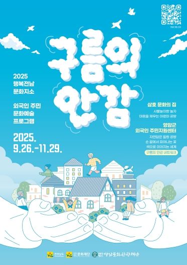 한방통신사 신다은기자 기자 | (재)영암문화관광재단은 문화예술을 매개로 외국인 주민과 지역 주민 간의 소통과 이해를 증진하기 위한 “구름의 안감”프로젝트를 오는 17일 밝혔다. 이 프로젝트는 구름 안감 속에 서로 다른 숨결들이 조화를 이루어 한 공간 속에서 새로운 꿈을 만들어 가길 바라는 관점에서 기획됐다.