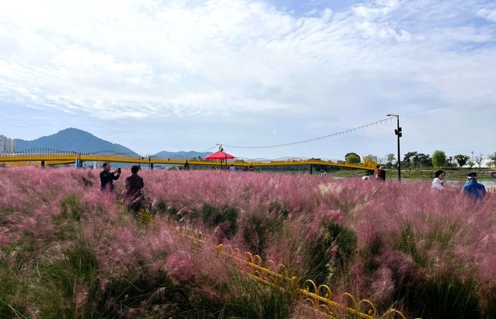 한방통신사 신다은기자 기자 | 장성군 황룡강 가을꽃축제 이튿날인 19일, 강변 곳곳마다 활짝 핀 가을꽃들이 방문객을 반기고 있다. 특히 용작교, 황룡정원 방면 백일홍과 연꽃정원 코스모스, 문화대교 인근 핑크뮬리가 아름답다.