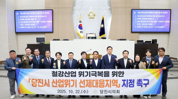 한방통신사 신태공 기자 | 당진시의회는 22일 제124회 임시회 제1차 본회의에서 김덕주 의원이 대표 발의한 ‘당진 철강산업 위기극복을 위한 산업위기 선제대응지역 지정 촉구 건의안’을 채택했다.
