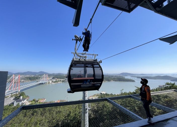 한방통신사 신다은기자 기자 | 가을여행주간을 맞이하여 전남도로 많은 가족단위 여행객들이 방문이 많아지면서 안전에 대한 관심이 높아지고 있는 가운데 명량해상케이블카는 지난 10월 20일 비상상황 대응 능력을 강화하기 위해 진도소방서와 함께 케이블카 합동 구조훈련을 실시했다.