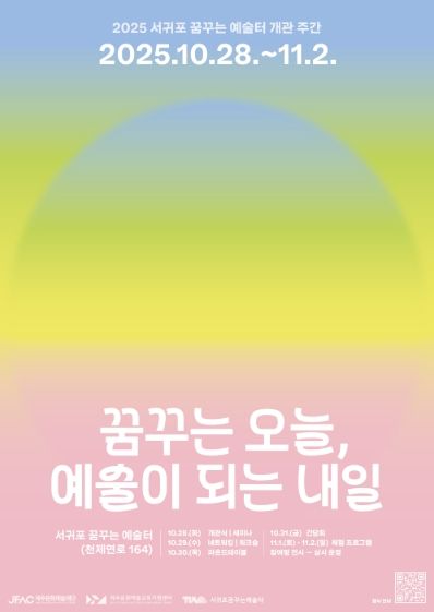 류일순 제주도 문화체육교육국장은 “서귀포 꿈꾸는 예술터는 지역의 문화적 균형 발전을 이끌어갈 중요한 거점”이라며 “도내 최초 공공 문화예술교육 전용시설을 통해 도민 누구나 일상에서 예술을 향유하며 더 풍성한 삶을 누릴 수 있도록 지원하겠다”고 말했다.