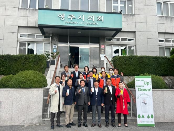 이번 캠페인은 자원봉사단체 ‘커피프린세스’와 함께 진행됐으며, 영주시의회 의원 및 사무국 직원들을 대상으로 텀블러 사용 장려와 종이컵 사용 절감을 실천하는 친환경 캠페인으로 전개됐다.