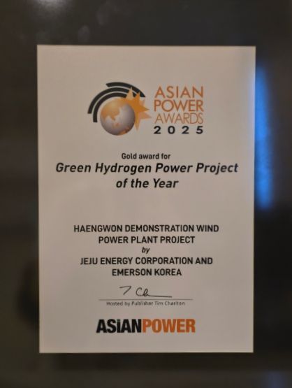 한방통신사 신유철기자 기자 | 제주에너지공사는 ‘아시안 파워 어워드 2025’에서 ‘올해의 그린수소 프로젝트상’ 골드(GOLD) 등급을 수상했다고 10월 27일 밝혔다. 2005년부터 시작된 ‘아시안 파워 어워드’는 아시아 전력 산업 분야에서 획기적인 성과를 거둔 기업을 선정하는 최고 권위의 상으로, '전력 산업의 오스카상'으로 불린다. 올해 시상식은 지난 10월 23일 말레이시아 쿠알라룸푸르에서 개최됐다.