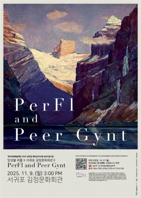 한방통신사 신유철기자 기자 | 서귀포시는 2025년 공연장 상주단체 육성지원사업의 일환으로, 11월 9일 오후 3시 김정문화회관 공연장에서 앙상블 퍼플의 플루트·타악기 앙상블 공연 '페르귄트'를 개최한다.