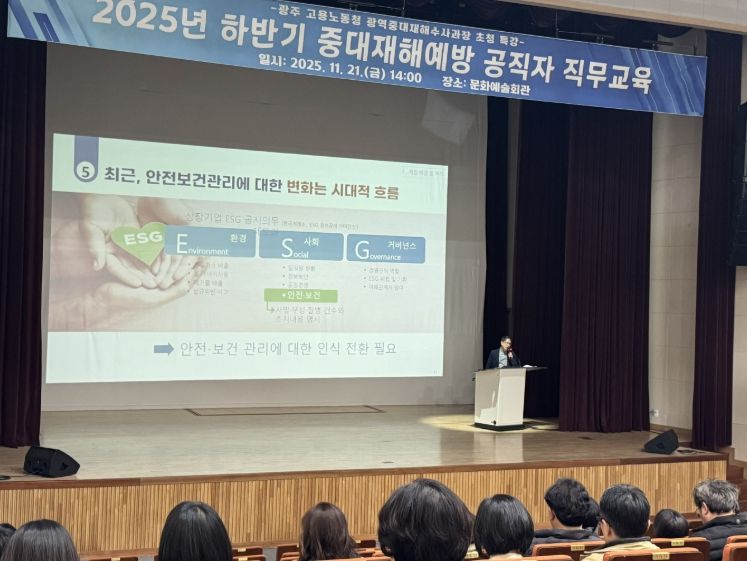 한방통신사 신다은기자 기자 | 전남 구례군은 지난 21일 문화예술회관에서 광주 지방노동청 광역중대재해수사과장을 초청해 ‘2025년도 하반기 중대재해 예방 공직자 직무교육’을 실시했다고 밝혔다.