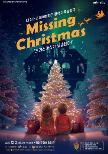 한방통신사 김성의 기자 | 광주 광산구가 12월 2일 광산문화예술회관에서 천원문화마실 제8편 창작가족음악극 ‘Missing Christmas-크리스마스가 실종됐다!’를 선보인다.