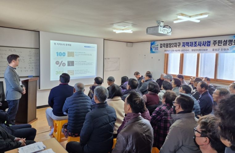 한방통신사 권영분기자 기자 | 음성군은 4일 감곡면 원당2리 복지회관에서 2026년도 591필지(75만5146㎡) 감곡원당2지구 지적재조사사업에 대한 주민설명회를 개최했다.