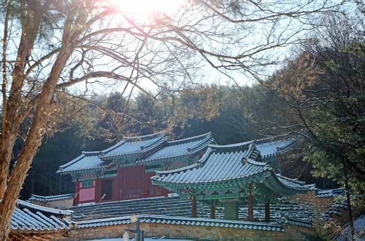 서원 앞마당에 내려앉은 눈과 차가운 공기 속에서 흐르는 고요함은 잠시 시간을 멈춰 세운 듯한 정취를 자아냈다.