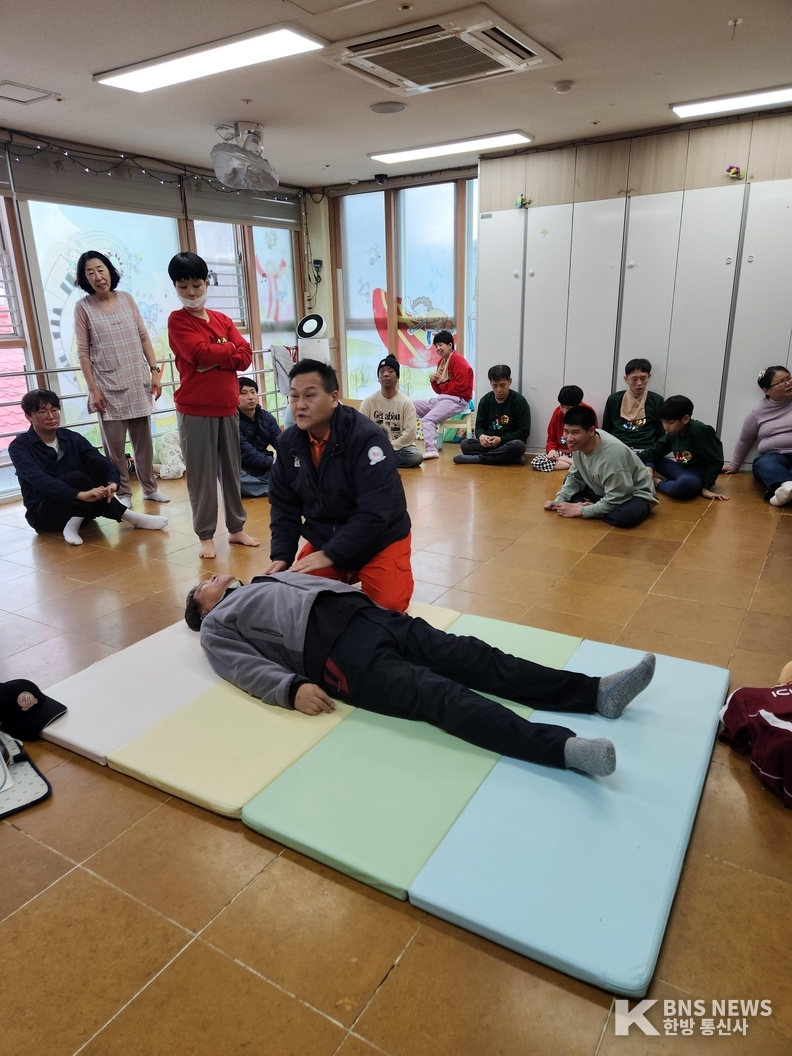 지난 2025년 12월 6일(일) 11시 장애인생활시설 가브리엘의 집에서 사)지지봉사단과 대한인명구조단(SRT911)은 다문화 가정과 장애인 10여명과 함께 1:1 심폐소생술(CPR)과 떡이나 동전을 삼켰을때 응급처치 방법인 하임리히법(성인 대상) 교육을 진행했다.