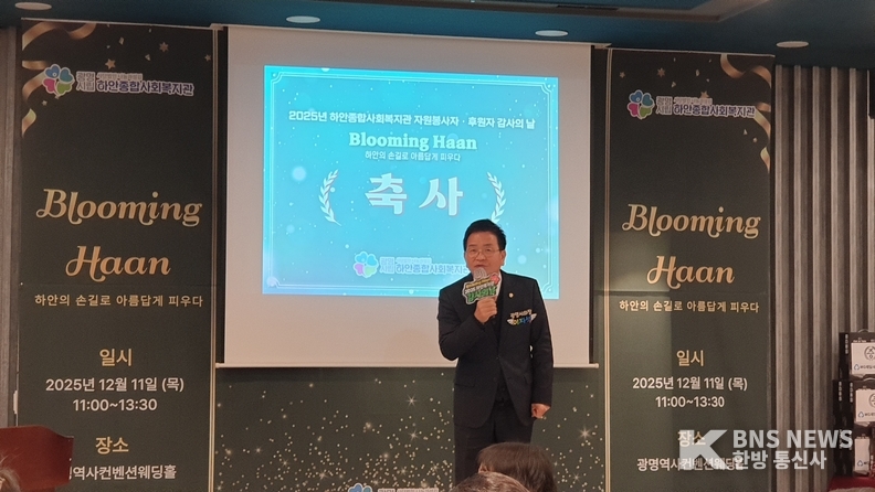 광명시의회 이지석 의장은 2026년 예산 1조 4천억 예산 심의와 검토중이라 다른 시의원들이 참석을 못했다면서 봉사자 여러분들이 천사이다.라고 칭찬을 한후 11명의 시의원도 열심히 하겠다고 축사를 했다.