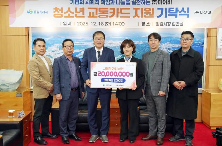장금용 창원특례시장 권한대행은 “지속적인 나눔을 통해 지역 청소년들을 지원해주시는 ㈜마이비에 깊이 감사드린다”며, “기탁된 교통카드는 청소년들의 교통비 부담 완화에 잘 활용될 수 있도록 전달하겠다”고 말했다.