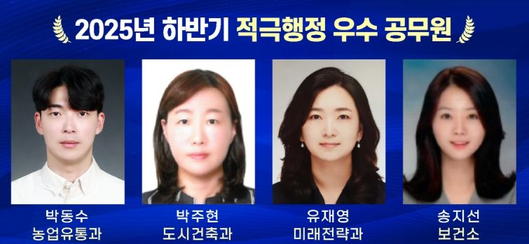 한방통신사 권영분기자 기자 | 충북 증평군이 공직사회 내 적극행정 문화를 확산하고 실질적인 행정 성과를 이끈 공무원 4명을 ‘하반기 적극행정 우수공무원’으로 선정했다.