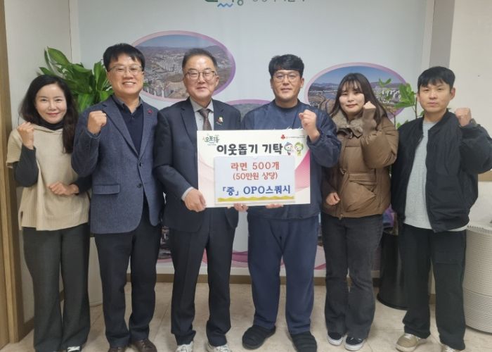한방통신사 신유철기자 기자 | OPO스쿼시 강인석 대표는 23일 어려운 이웃에게 전달해 달라며 광주시 오포1동에 라면 500개(50만 원 상당)를 기탁했다.