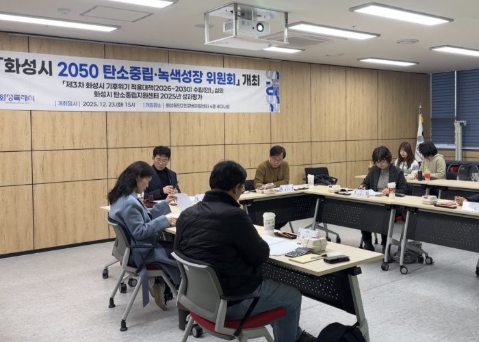 한방통신사 신유철기자 기자 | 화성특례시는 지난 23일 화성동탄2인큐베이팅센터에서 ‘2050 탄소중립·녹색성장위원회’ 회의를 열고 '제3차 기후위기 적응대책(2026~2030)' 최종(안)과 탄소중립지원센터 2025년 성과 평가를 심의했다.