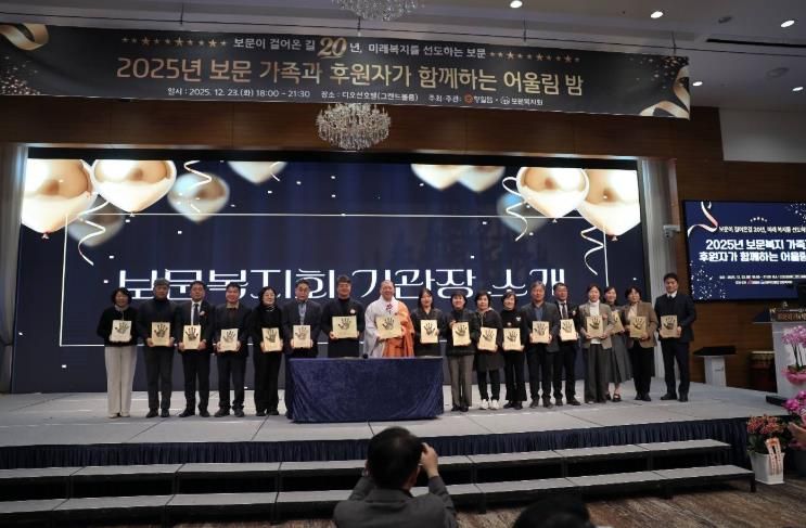 한방통신사 신다은기자 기자 | 사회복지법인 보문복지회는 설립 20주년을 기념해 지난 12월 23일 디오션호텔 그랜드볼룸에서 ‘2025년 보문 가족과 후원자가 함께하는 어울림 밤’을 개최했다.