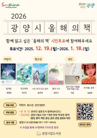 ‘2026 올해의 책’은 시민투표 결과를 토대로 오는 2월 광양시립도서관운영위원회의 최종 심의를 거쳐 확정될 예정이다.
