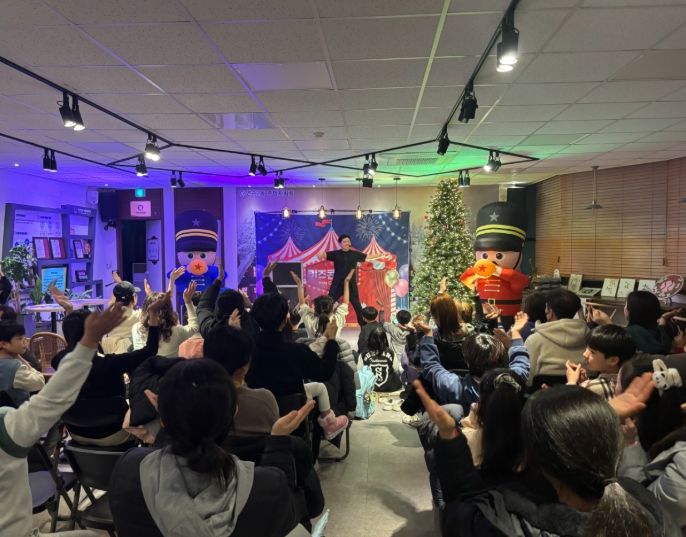 크리스마스트리 장식품(오너먼트) 만들기 체험에서는 다양한 재료를 활용해 각양각색의 장식을 완성하며 연말 분위기를 만끽했으며, 이어진 마술 공연에서는 아이들과 부모 모두 신비한 마술의 세계를 경험했다.