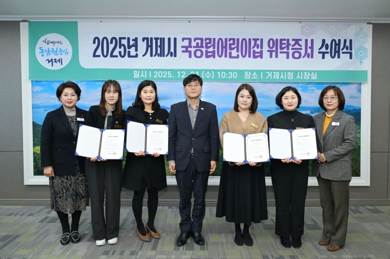 한방통신사 신유철기자 기자 | 거제시는 12월 31일, 시장실에서 국공립어린이집 수탁자로 선정된 어린이집에 위탁계약증서를 수여했다.