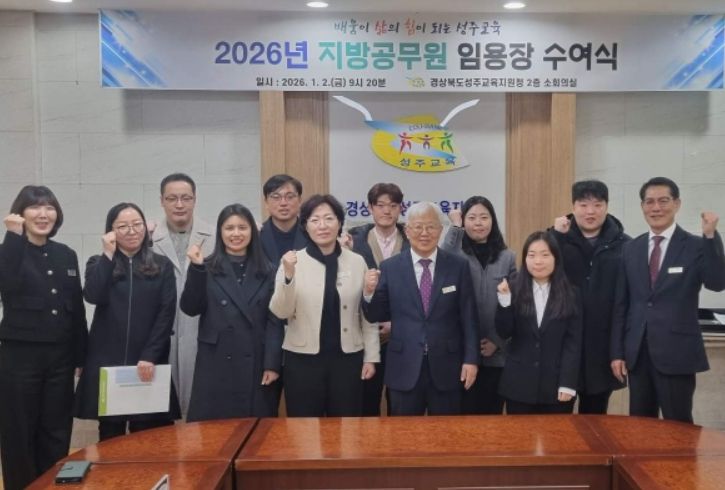 한방통신사 신유철기자 기자 | 성주교육지원청은 2026년 1월 2일 청사 내 소회의실에서 지방공무원 전입자 및 신규 임용자를 대상으로 임용장 수여식을 개최했다.