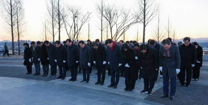 이날 시무식에 앞서 최기문 시장과 간부 공무원들은 새해 첫 일정으로 충혼탑을 참배하며 호국영령과 순국선열의 뜻을 기렸다.