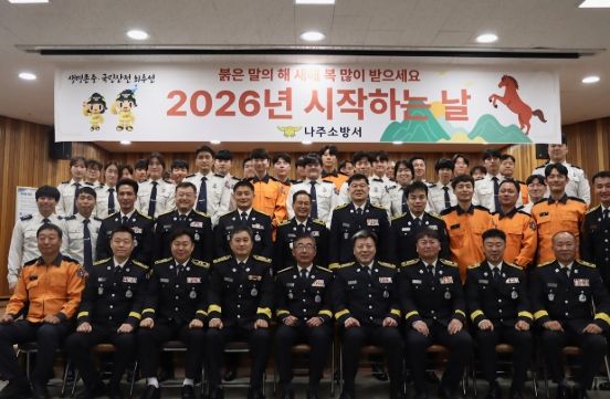 한방통신사 신다은기자 기자 | 나주소방서는 2일 2026년 새해를 맞아 시무식 행사를 개최하고 한 해 동안의 각오를 다지며 지역 안전 강화를 위한 힘찬 출발을 알렸다.