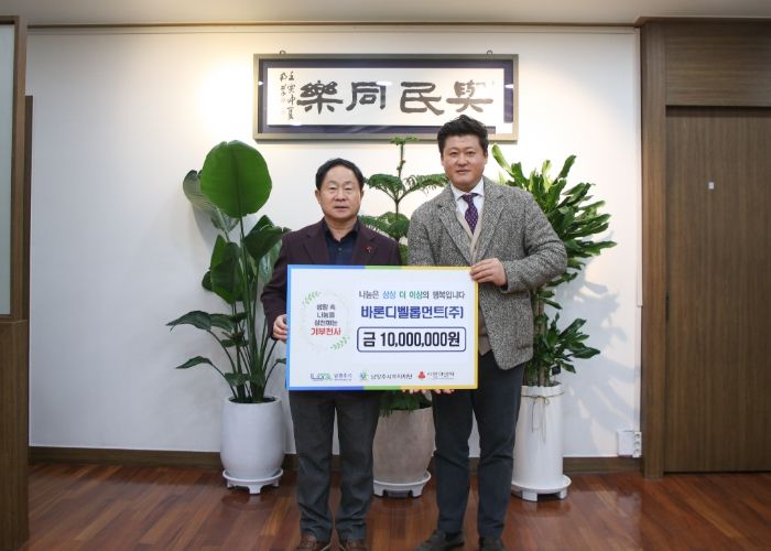 한방통신사 신유철기자 기자 | 남양주시는 5일 바른디벨롭먼트 주식회사가 지역 내 취약계층 지원을 위해 후원금 1천만 원을 남양주시복지재단에 기탁했다고 밝혔다.