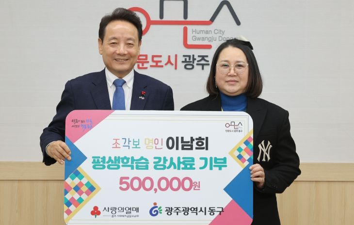 이번 기부는 평생학습 현장에서 얻은 보수를 다시 지역사회에 환원한 사례로, 인문적 가치와 공동체 정신을 실천하는 ‘인문도시 동구’의 지향점과도 맞닿아 있어 그 의미가 남다르다.