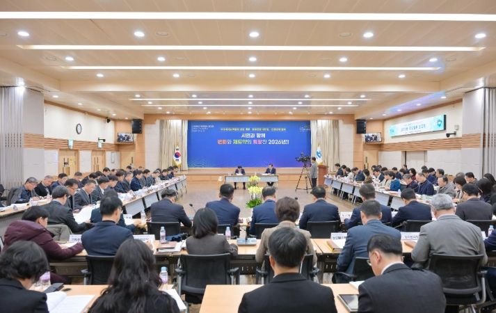 한방통신사 신다은기자 기자 | 여수시는 지난 15일 시청 회의실에서 정기명 여수시장 주재로 5급 이상 간부 공무원 70여 명이 참석한 가운데 ‘2026년 주요 업무 보고회’를 개최했다.