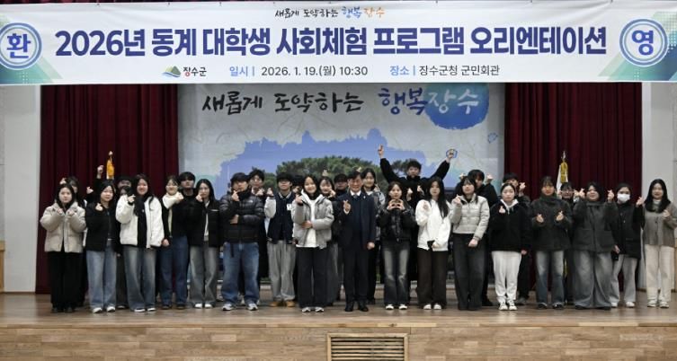 한방통신사 김성의 기자 | 장수군은 19일 군청 군민회관에서 2026년 동계 대학생 사회체험 프로그램 ‘오리엔테이션’을 진행하고 3주 간의 행정체험 프로그램을 공식 시작했다고 밝혔다.