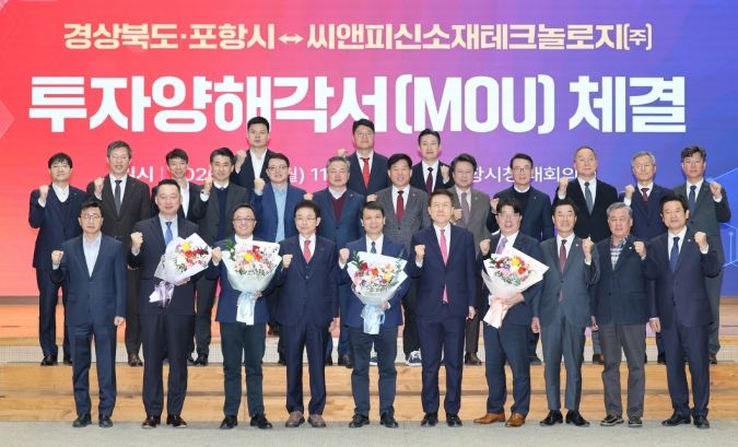 한방통신사 신유철기자 기자 | 포항시와 경상북도는 19일 포항시청 대회의실에서 씨앤피신소재테크놀로지㈜와 5,000억 원 규모의 투자양해각서(MOU)를 체결했다.