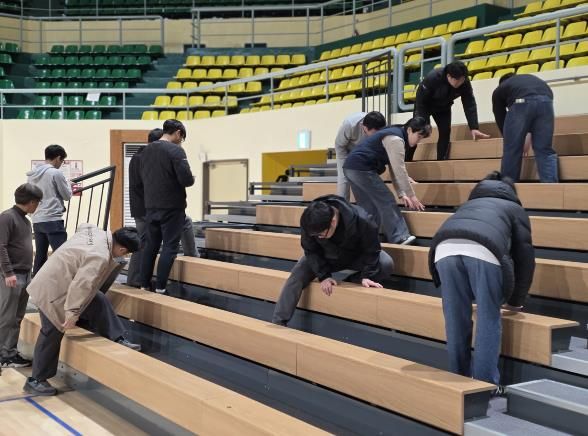 - 2부 시운전 경기: 족구, 배드민턴 등 실제 경기를 통한 시운전으로 마루 충격 흡수력 및 가변석 하중 안전성 실증
