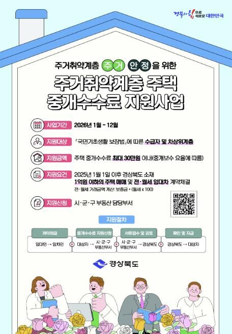 한방통신사 신유철기자 기자 | 상주시는 주거 취약계층의 경제적 부담을 완화하고 안정적인 주거환경 조성을 위하여 2026년 1월부터 “주거 취약계층 주택 중개보수 지원사업”을 시행한다.