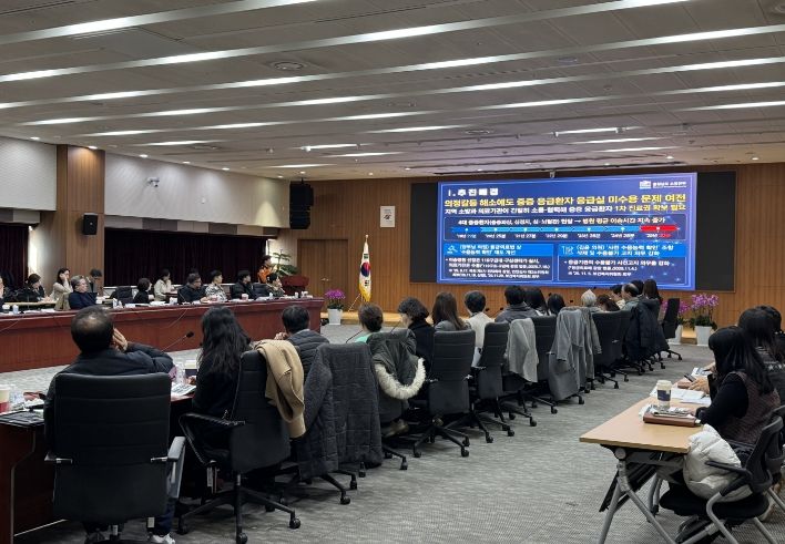 이 과정에서 응급의료기관의 배후진료과 부족, 사법리스크로 인한 의료진 위축, 이송‧전원 과정에서의 소방과 의료기관 간의 구조적인 문제 등이 주요 과제로 제기됐으며, 참석자들은 지속적인 소통과 협력을 통해 실직적인 개선방안 마련 필요성에 뜻을 같이 했다.