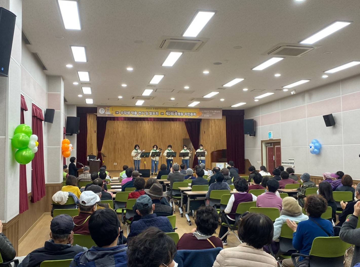 주민총회와 함께 호평동 주민자치센터 수강생의 작품전시회 및 발표회가 개최됐다. 아동미술심리, 캘리그라피 등 프로그램 체험실을 운영하고 성인유화, 수채화, 인물화 등 미술ㆍ예술 분야의 강좌 수강생들의 작품이 전시됐을 뿐만 아니라 주민자치위원의 특별공연을 포함해 라인댄스, 고전무용 등 다채로운 공연이 펼쳐졌다.