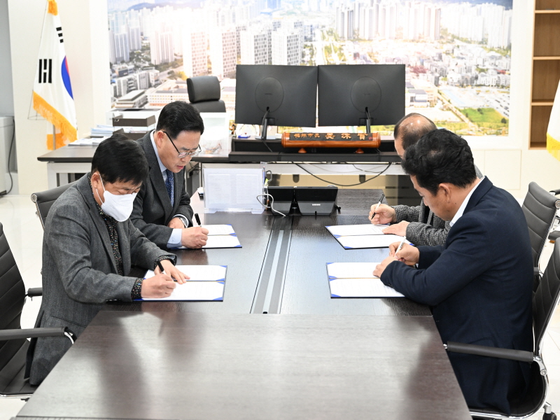 양주시(시장 강수현)는 지난 28일 시장실에서 양주시의회(의장 윤창철), 개인택시운송사업조합 양주시조합(조합장 양재화), ㈜양주상운·와이제이협동조합(대표 경숙정)과 택시 승차난 해소를 위한 상생협약을 체결했다고 밝혔다.