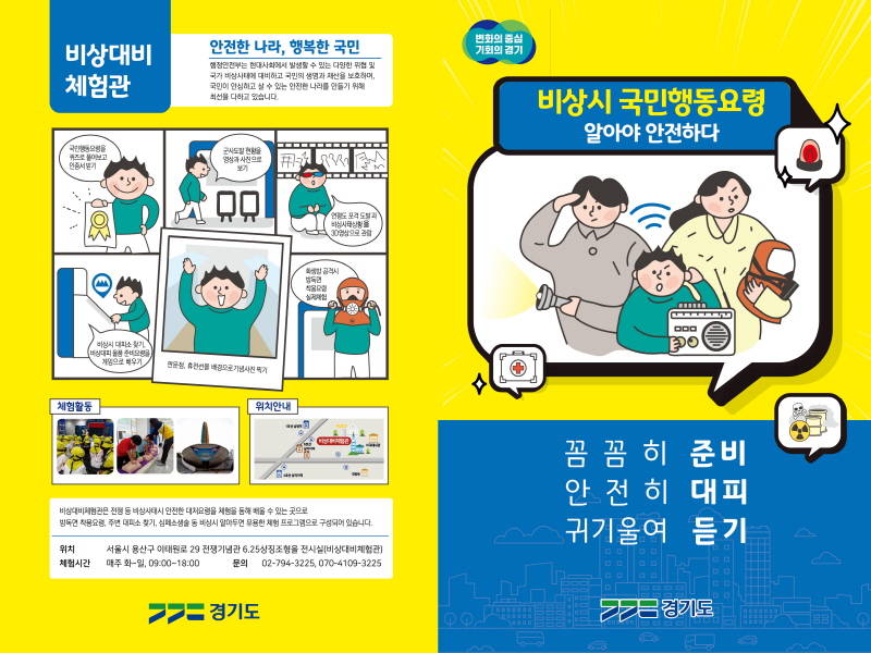 ‘비상시 국민행동요령’은 북한 미사일 발사, 러시아-우크라이나 전쟁 등 최근 급변하는 안보상황에 대응해 도민들의 불안감을 해소하고 도민의 안전을 확보하고자 경기도가 행정안전부 시안을 토대로 제작한 홍보물이다.