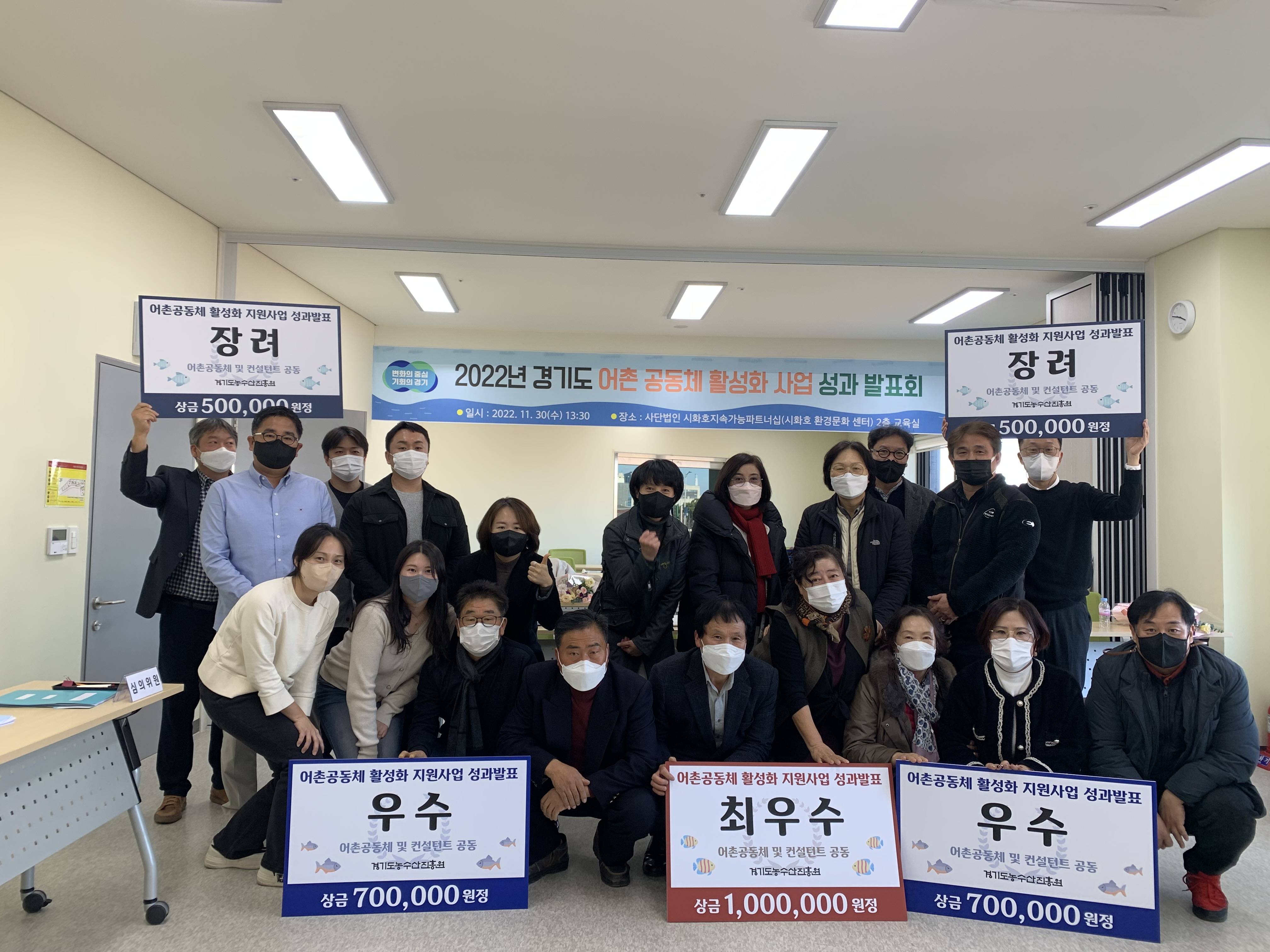시흥시(시장 임병택)는 지난 11월 30일 시화호 환경문화센터(지속가능 파트너십)에서 열린 ‘2022년 경기도 어촌 공동체 활성화 지원사업’ 성과보고회에서 오이도어촌계와 월곶어촌계가 우수한 성적으로 입상하면서 사업을 성황리에 마무리했다고 밝혔다.
