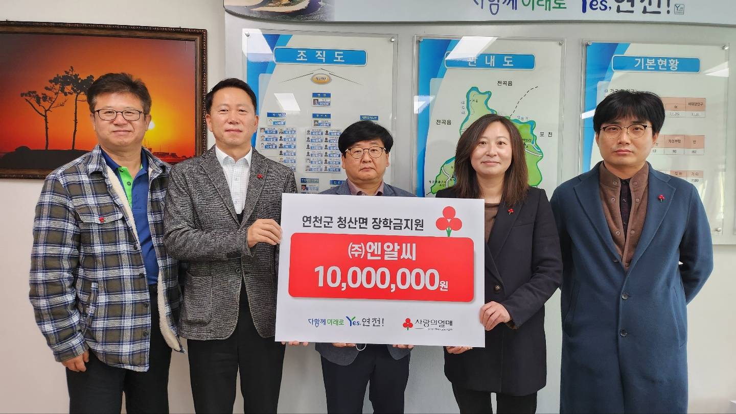 연천군 청산면 소재 ㈜엔알씨(대표이사 김선배)는 관내 학생들을 위한 장학금 1000만원을 청산면에 기탁했다고 1일 밝혔다.
